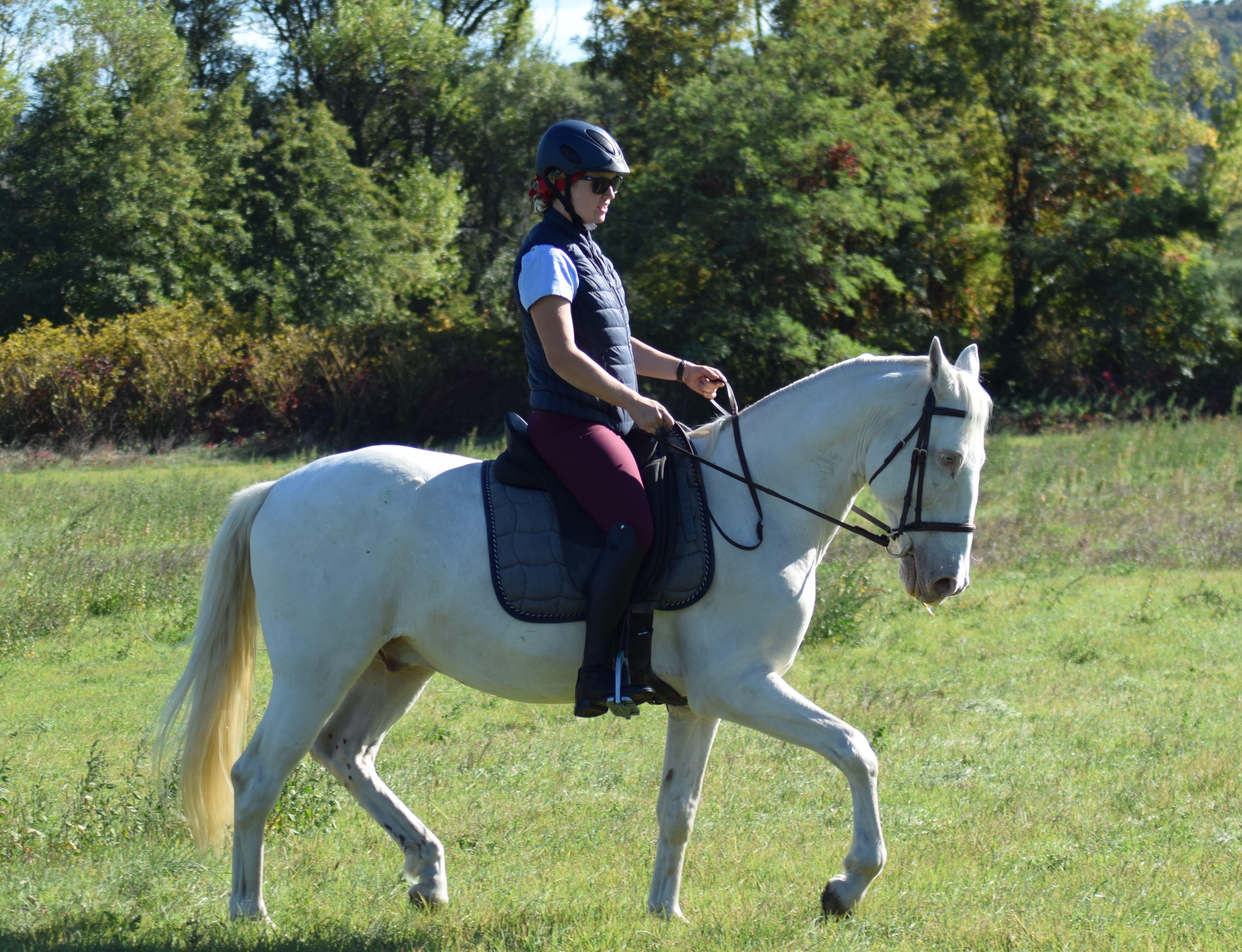 Pour le travail monté, chaque séance est conçue de manière personnalisée, en fonction de vos objectifs et des besoins spécifiques de votre cheval. Forte de mon expérience en dressage et en travail d'extérieur, je vous accompagne dans le développement de l'équilibre et de la confiance de votre cheval, que ce soit pour des exercices de base ou des sorties plus longues et variées.
